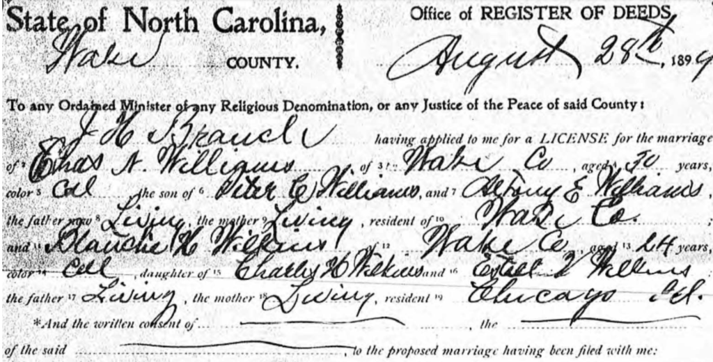 On 28 August 1899, Blanche Wilkins married Charles Williams, the (hearing) principal of the North Carolina School for Colored Deaf. She returned to Raleigh, teaching sewing and dressmaking to Deaf girls and knitting and crocheting to Blind girls.