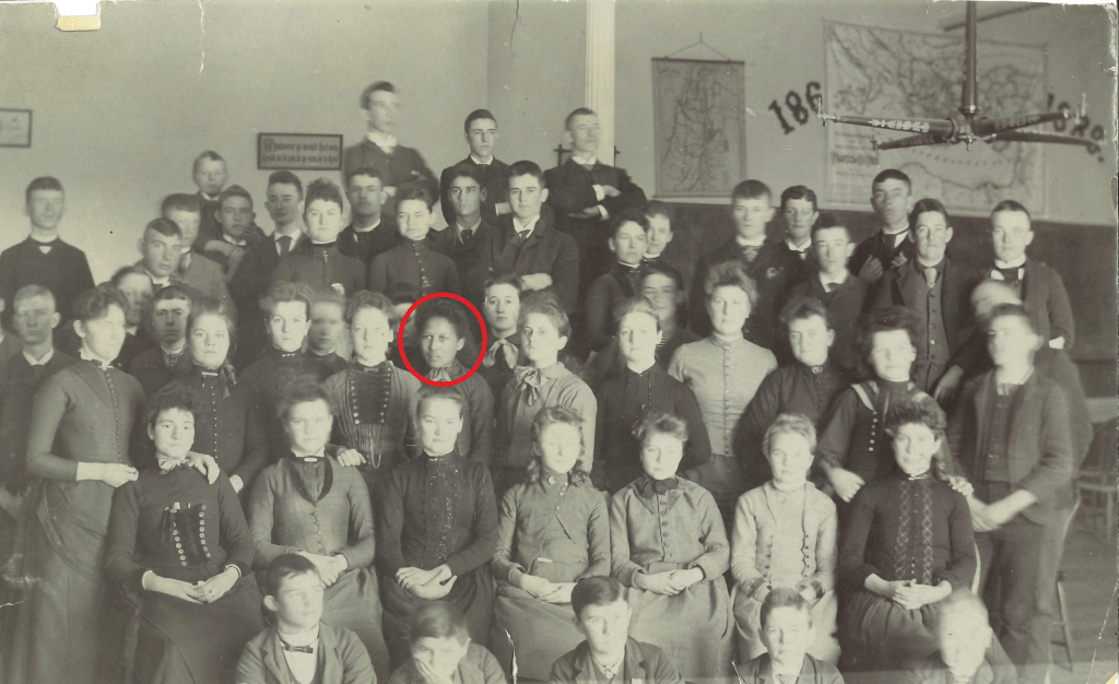 Blanche Wilkins enrolled in MSD in 1883 and received a common course of study: object lessons, alphabet, penmanship, articulation & lip-reading, reading & writing English. She received oral training but was commended for being an excellent signer & student.